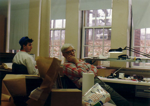 The basement was production and dogs. The space was about 25 x 40 feet overall. We had a small company of (now defunct) architects as our neighbors. Plus their black poodle Gus, whom Vova fittingly called "The Puddle".