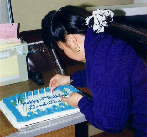 She also made a very fun cake for Dendritics' 14th Anniversary (on April Fools day, of course). Computations indicate that this must have been in 1996.