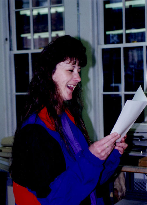 Lucille lived across the street and worked for a year or so part-time in Production. It was so convenient (the hours and the commute) that she couldn't quite stand to quit entirely! She has offspring Nicole and Derek and a new son Brendan ... and a dog, Case.