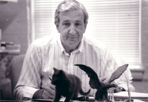 Squirkel as a kitten, in front of a worried-looking Bill.