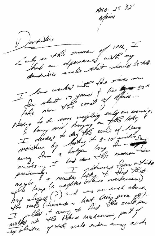 Thaddeus in Maine had melted a scale in August of 1992 when he was trying to dry it out after "heavy mist". The halogen light fell on it and for 5 full minutes had its way with the scale. Amazingly, we were able to repair it. the only damage was to the case, the sensor (once it was no longer squished by the case) was totally undamaged. We gave it a new case and sent it back, where (as far as I know) it is still alive and well a decade later, in 2002!