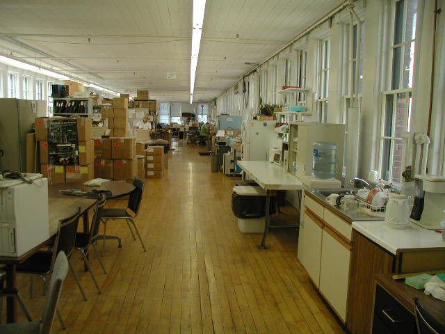 The West end, where Production mainly happened.  The Charles River is out those huge windows.  Hal's Room is through the door jutting out beneath the AC in the right corner.  Those are the last of the D-500's being made in the foreground.